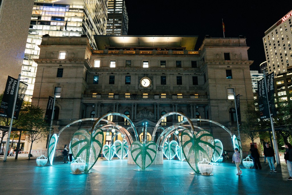 As part of the City of Sydney’s Art & About Festival, Sydneysiders are invited to experience Meeras at Customs House Square, on Gadigal Country. Meeras is a handcrafted bamboo pavilion, embedded with interactive light and sound. Step into the immersive space, animate water-like light across taro leaves, and listen to a soundscape of rain on boarders of Myanmar and moments of making over the past four years of developing Meeras.