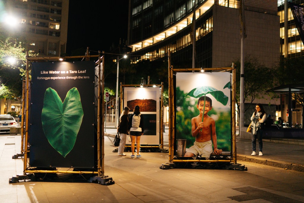 Alongside the Pavilion, a photo exhibition ‘Like Water on a Taro Leaf’ celebrates the way Rohingya communities a making a mark by continuing to practice culture, resist erasure and continue their legacy (Meeras), despite immense challenges and living life in limbo – By Victor Caringal and Zia Hero from Rohingya Photographer.