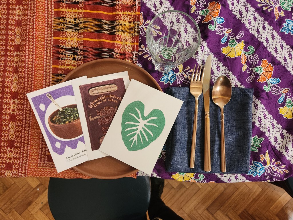 Postcards: Each guest received a collection of postcads including recipes, the Taro leaf and evidence of Rohingya existence supplied by Ek Khaale.