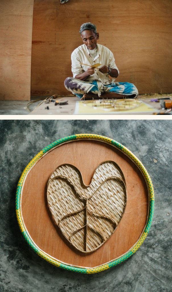 Kolim began woodworking at age 10 in Arakan, learning from a local carpenter to survive. “We started this work out of necessity, to put food on the table, many people buy my furniture for weddings, I also make lots of baby cradles.” Through carving the taro, Kolim shares a message: “Our life is like water on a taro leaf, we have no ground beneath us, no place to stand. But by showing this publicly, across the world, we leave a mark that cannot be thrown away.”
