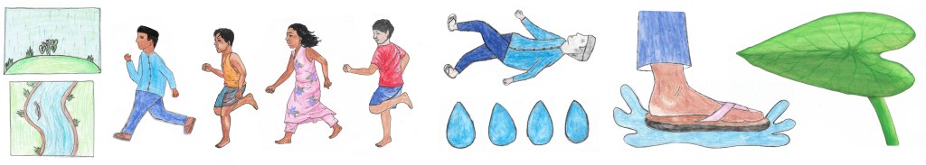 (Adozja Nati okkolore kissa hoor – tells a story to her lovely grandchildren)In a village called Tailla Fara, which was separated by a silver-colored river, there grew a garden of taro leaves. Their hearts were wide, green, and open to the sky. Among them lived a small leaf named Sofaida. Sofaida had one dream: to hold something of the world—rain, sunlight, or stories whispered by the wind.